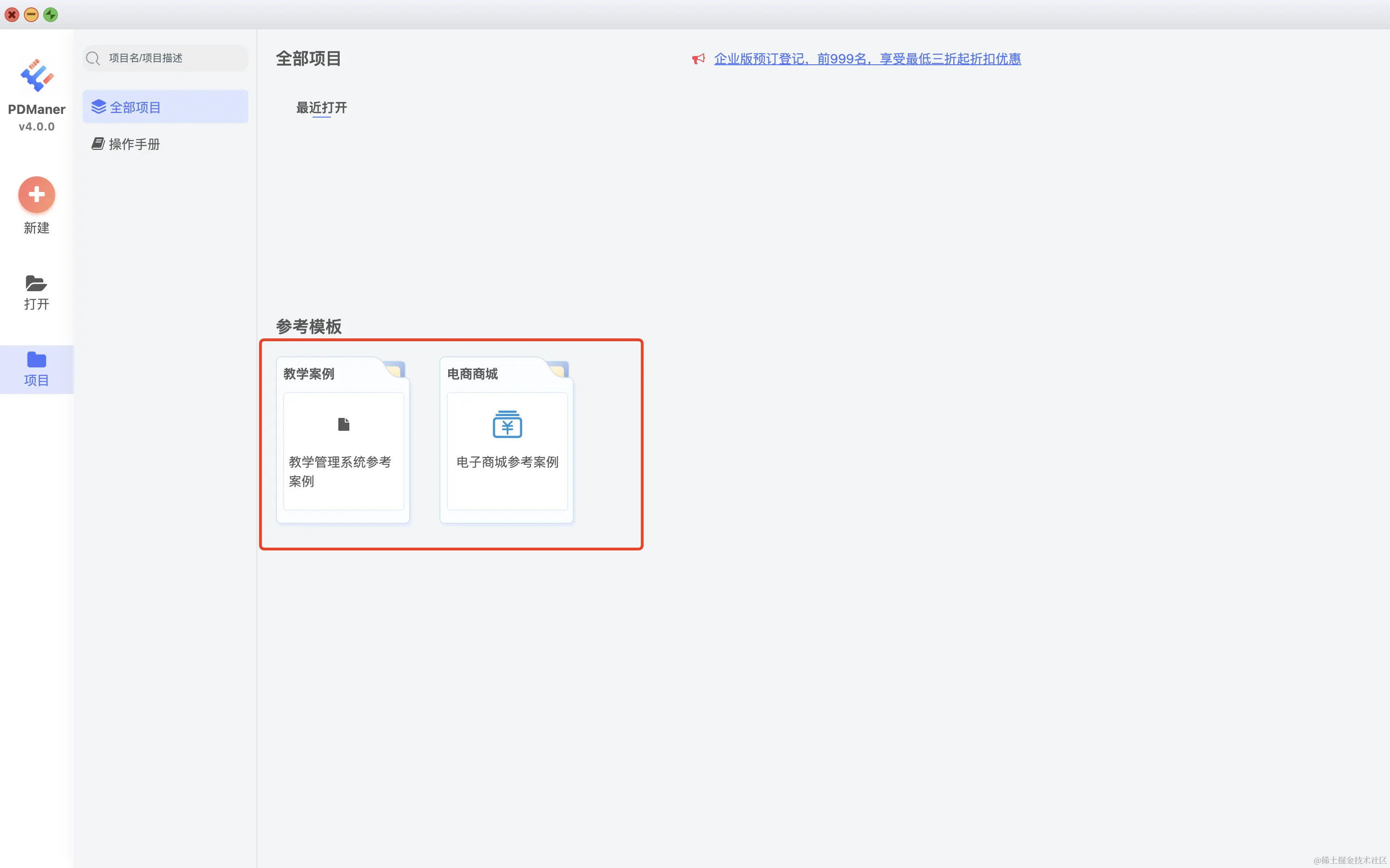 首页自带两个典型参考案例,方便用户快速了解软件支持的功能以及特性。