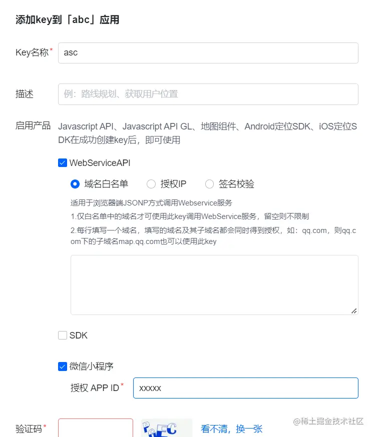 webserviceAPI服务:控制台->应用管理->我的应用->添加key->勾选WebServiceAPI -> 保存。(appid就是你的appid) -