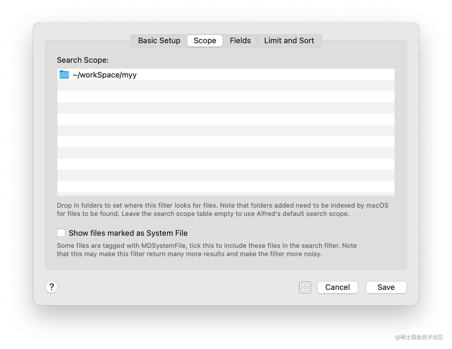 - Search Scope: 指定搜索范围,将目录拖拽进去即可