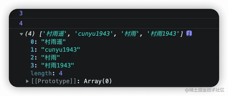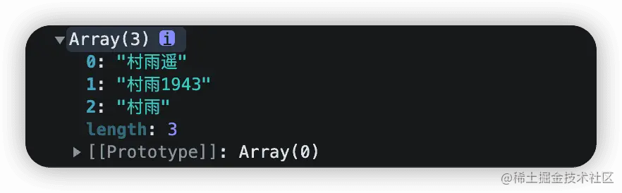 var arr = ['村雨遥', 'cunyu1943', '村雨'];