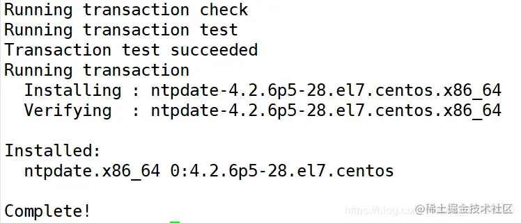 yum install ntpdate -y - 如果安装成功,应该出现以下字样。