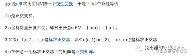 定义:n级实矩阵A称为正交矩阵,如果AA=E。(A表示A的共轭转置,E是单位矩阵)