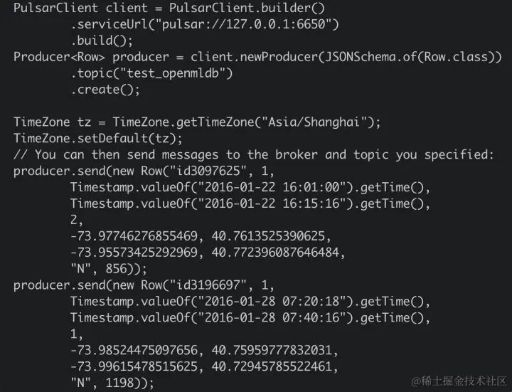 - 向 Pulsar 发送消息,来测试消息是否能自动写入到 OpenMLDB。