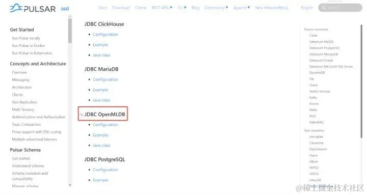 github.com/4paradigm/O… (OpenMLDB Pulsar Connector) openmldb.ai/docs/zh/v0.… (OpenMLDB文档) Built-in connector · Apache Pulsar (Apache Pulsar connector文档,OpenMLDB Pulsar Connector位置如图所示)