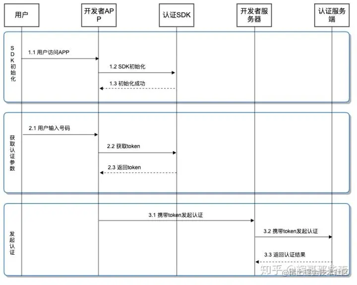 核心认证过程分为2步。第1步,通过移动数据网络发起请求,获取accessCode;第2步,通过accessCode和手机号请求认证结果。