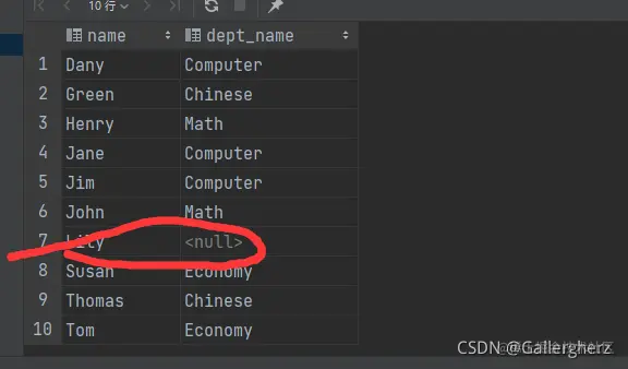 没有id = 7的学生信息,因为我们查找条件是 tb_student_info.dept_id = tb_departments.dept_id;