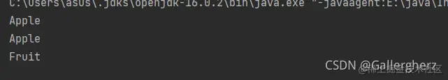 上案例:定义父类Fruit和子类Apple,案例和打印结果为: