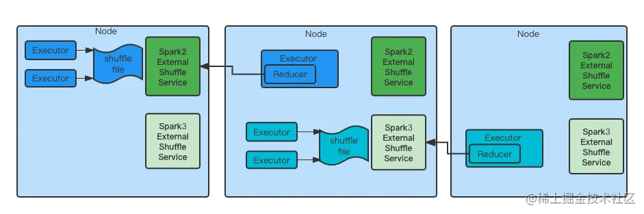Spark动态资源可以节省很多资源,但是要依赖shuffle service。因为集群在切换过程中需要同时支持Spark2(Hive on Spark2)和Spark3,所以需要保证集群能够同时支持两个版本的shuffle service。YARN在2.9.0之后支持了Classloader隔离的aux service。而Spark 3.1引入了可配置的方式去启动不同端口不同classpath包的shuffle service。但是在实践中发现,Yarn的这种机制并不能加载xml配置文件,需要将xml打成jar包才能识别。