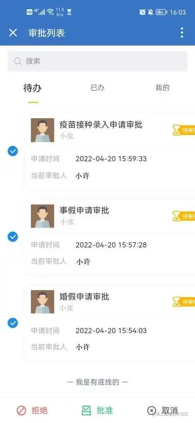 基于客户复杂的人员职级和职位,我们根据不同角色不同权限的审批流进行了下属和上级之间的"消息推送"和"消息通知";且上级可能管理多个下属,对应此开发了“批量操作”和“报表导出”的功能。以上功能在审批流转中上级和下属可以快速获取审批结果,并协助企业通过报表获取精准的数据。从多个角度满足了客户的需求,获得了客户的高度认可。