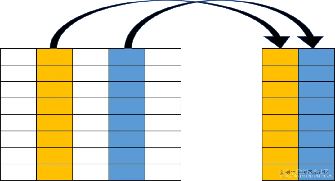 SELECT 子句用于指定需要查询的字段,可以包含表达式、函数值等。SELECT 在关系操作中被称为投影(Projection),看下面的示意图应该就比较好理解了。