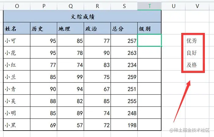 第一步: 首先将需要添加的几个标准列出来,随便在空白单元格中列出即可。