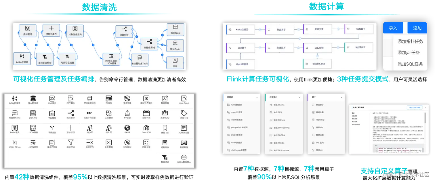 - 可视化编排,内置丰富算子,提高管道式数据处理工作效能