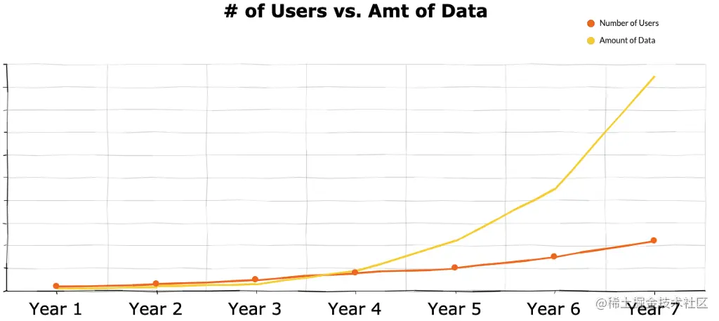 用户的增长与数据的增长(图片来自作者)。