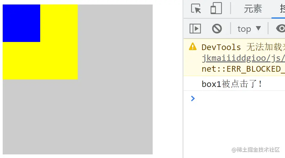 console.info("box1 被点击了!")