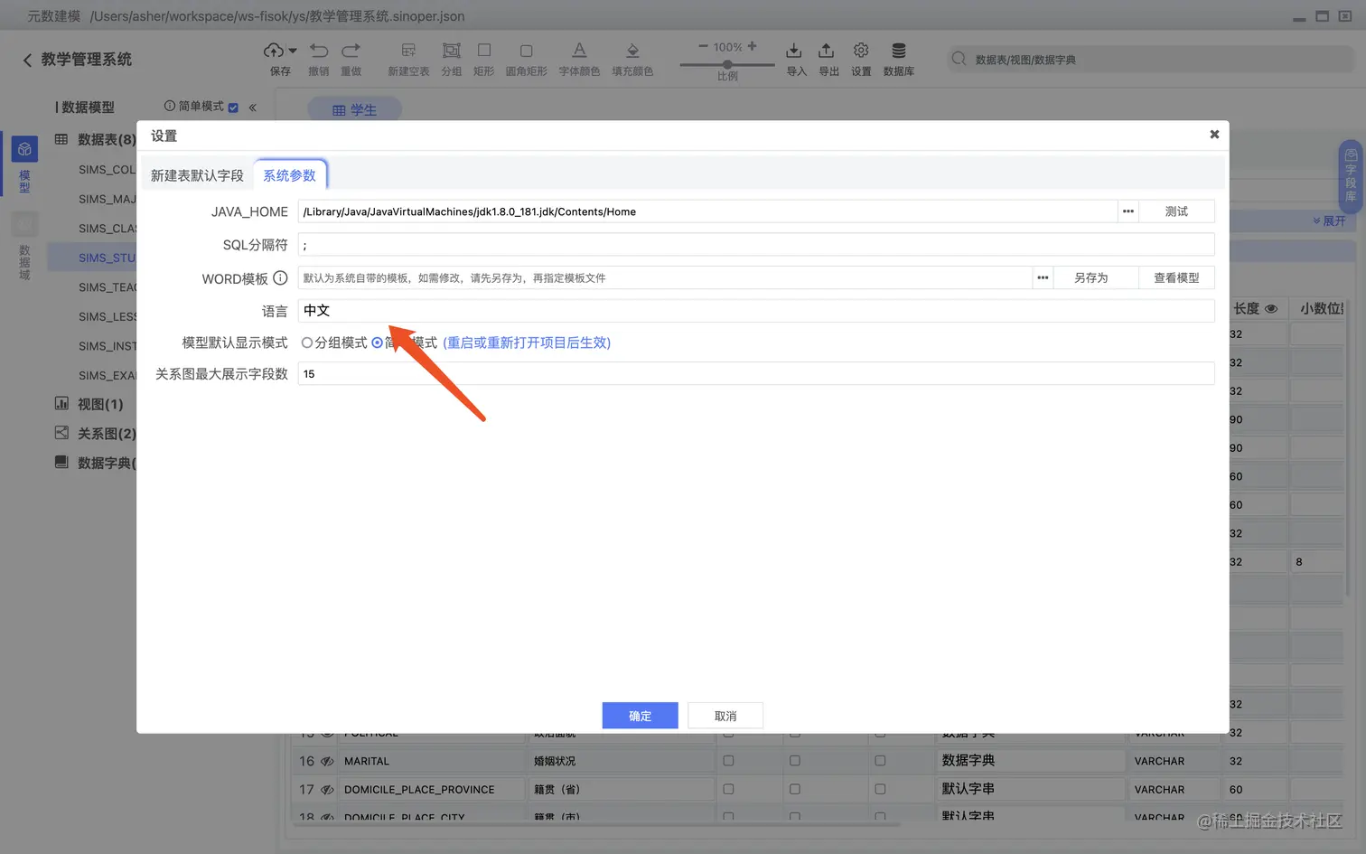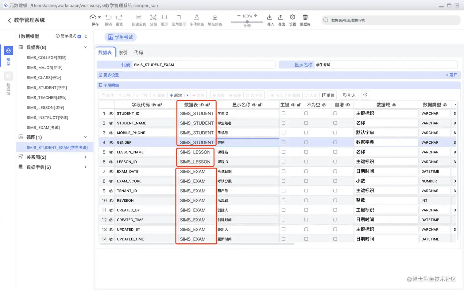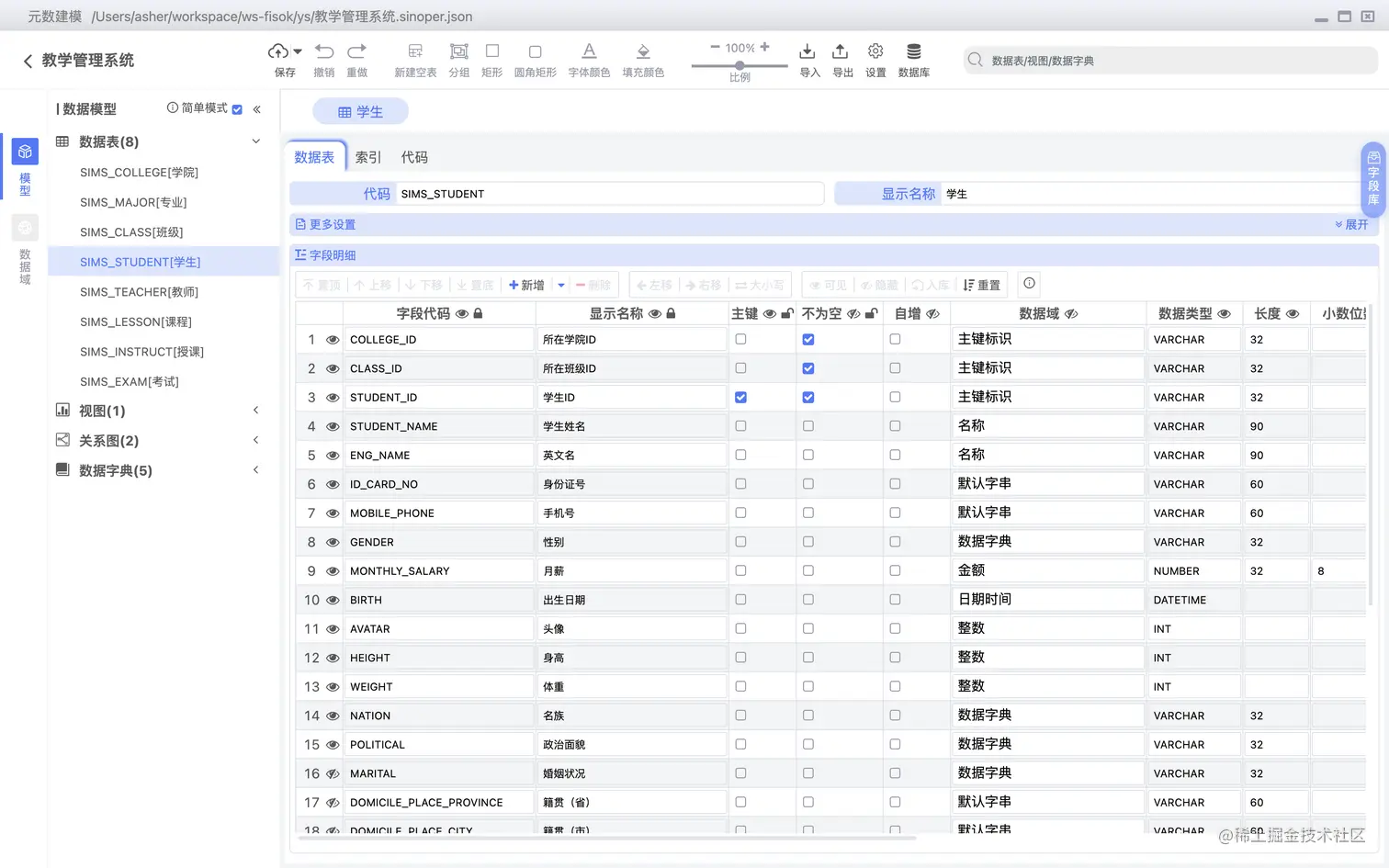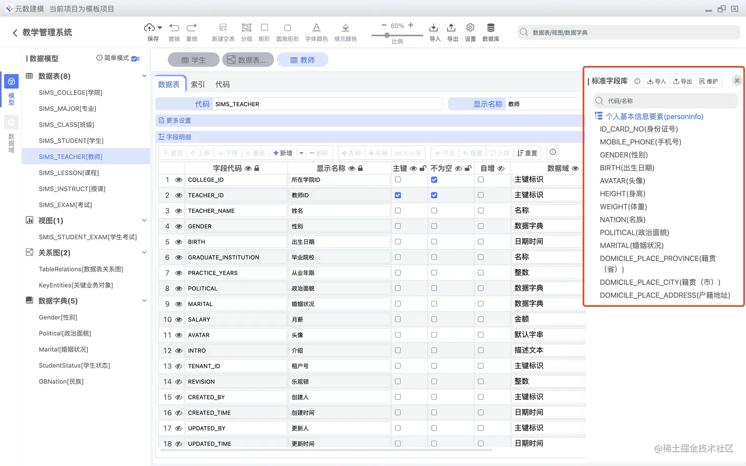 数据表字段可以直接关联数据字典,如下图所示: