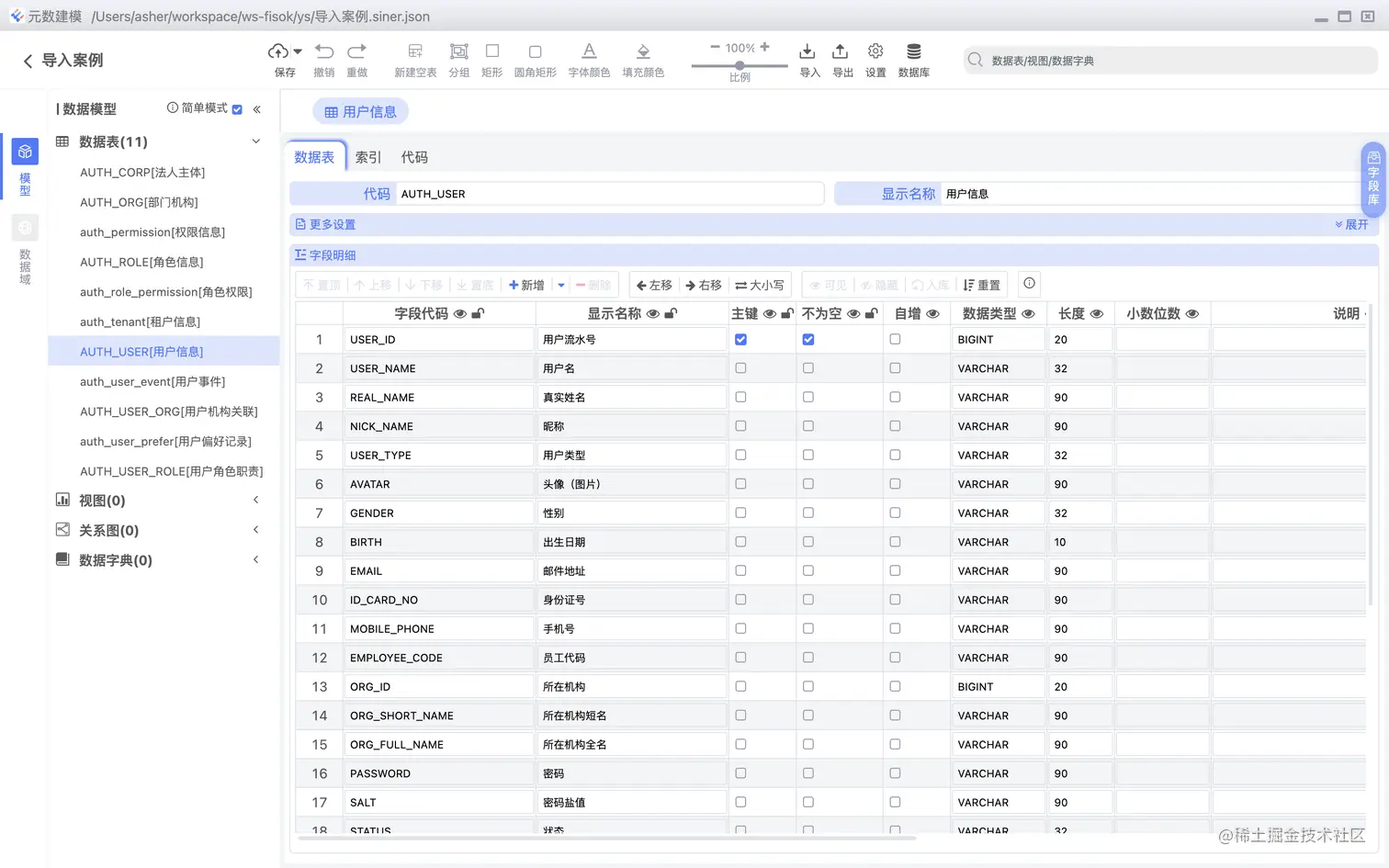 导入PowerDesigner,支持数据表,数据域的高度还原(不支持关系图还原),如下图: