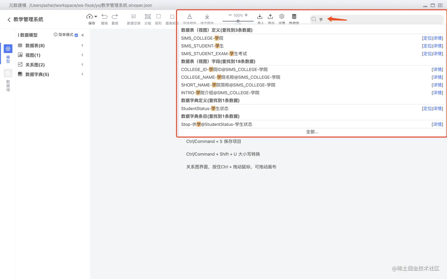 字段及关键字,数据字典等的全局搜索,如下图: