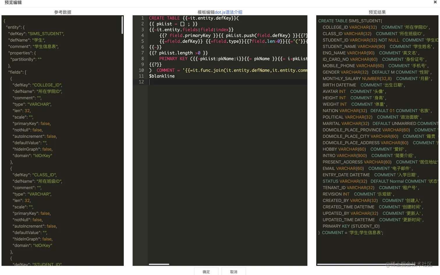 提供代码预览编辑,以便能够及时预览代码模板的效果,如下图: