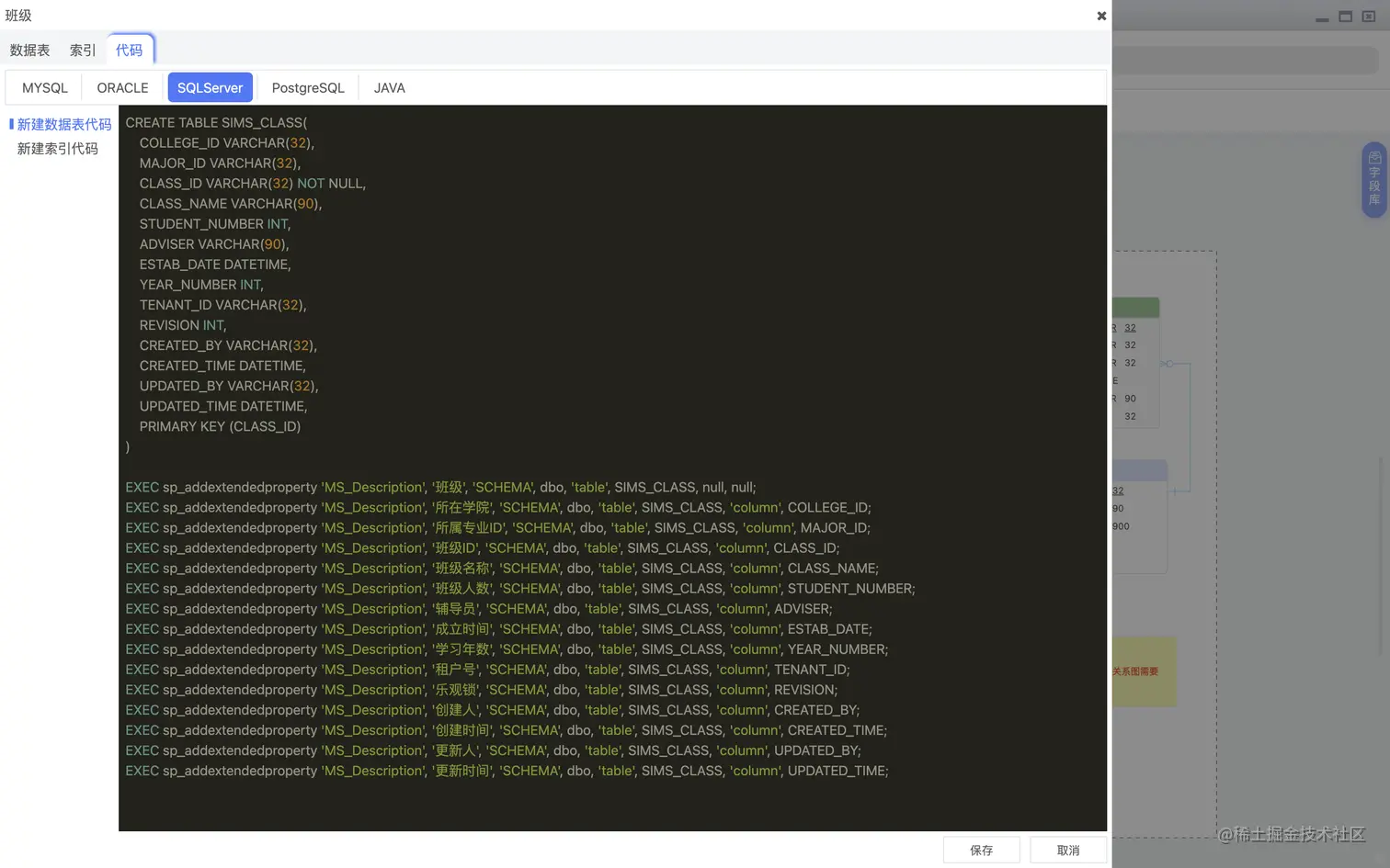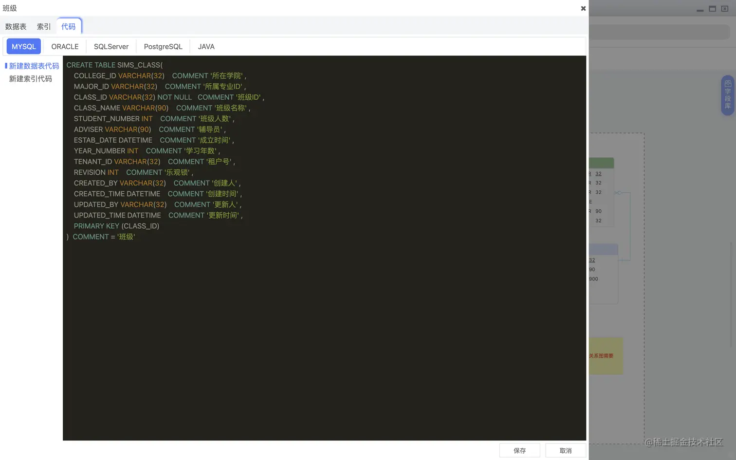 导出DDL,用于解决一次性导出指定数据表,针对指定数据库方言的导出,如下图: