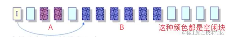 上图中数据块的分配都是连续的。因为是连续的,如果再往文件写内容,那么我们看A文件内容还能加多少?所以它一般用于写文件。