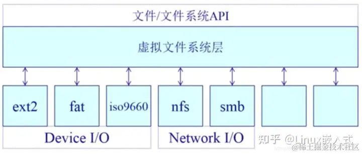 底层:特定文件系统模块,例如:网络文件系统(nfs、smb)等其他类型文件系统