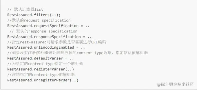 rest-assured有很多默认值,也正因为如此,需要我们的填的参数可以很少,也可以很多,就像画画一样,可以很精致,也可以很简洁。