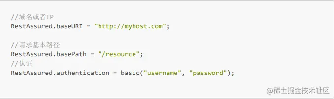 这就意味着,类似 get("/hello") 这样的一个请求,其实完整的请求为:myhost.com:80/resource/he… , 并且使用基础授权认证"username" and "password"。