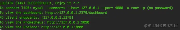 如果没指定组件的个数,会启动1个TiDB,1个TiKV和1个PD构成最小集群