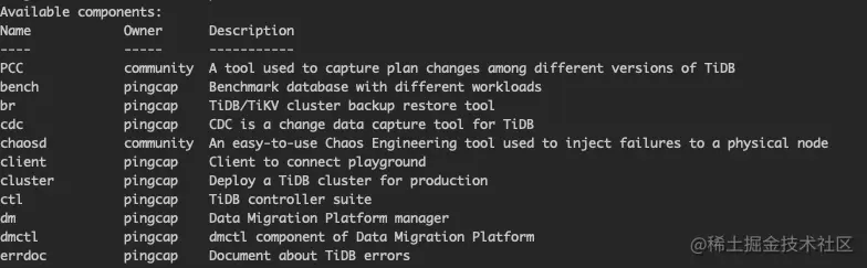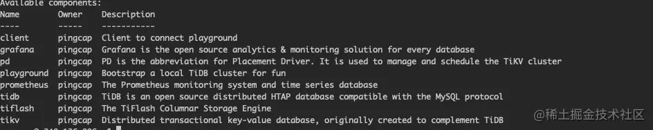 tiup查看可以安装的组件