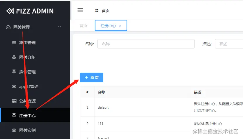 注册中心:选择前面新增的 nacos 中心。