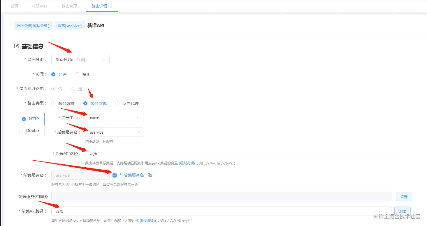 路由的定义可通过网关管理后台完成:
