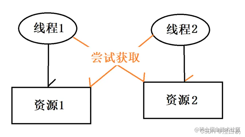 - 请求并持有条件:线程已经拥有了⼀个资源之后,还不满足,又尝试请求新的资源。