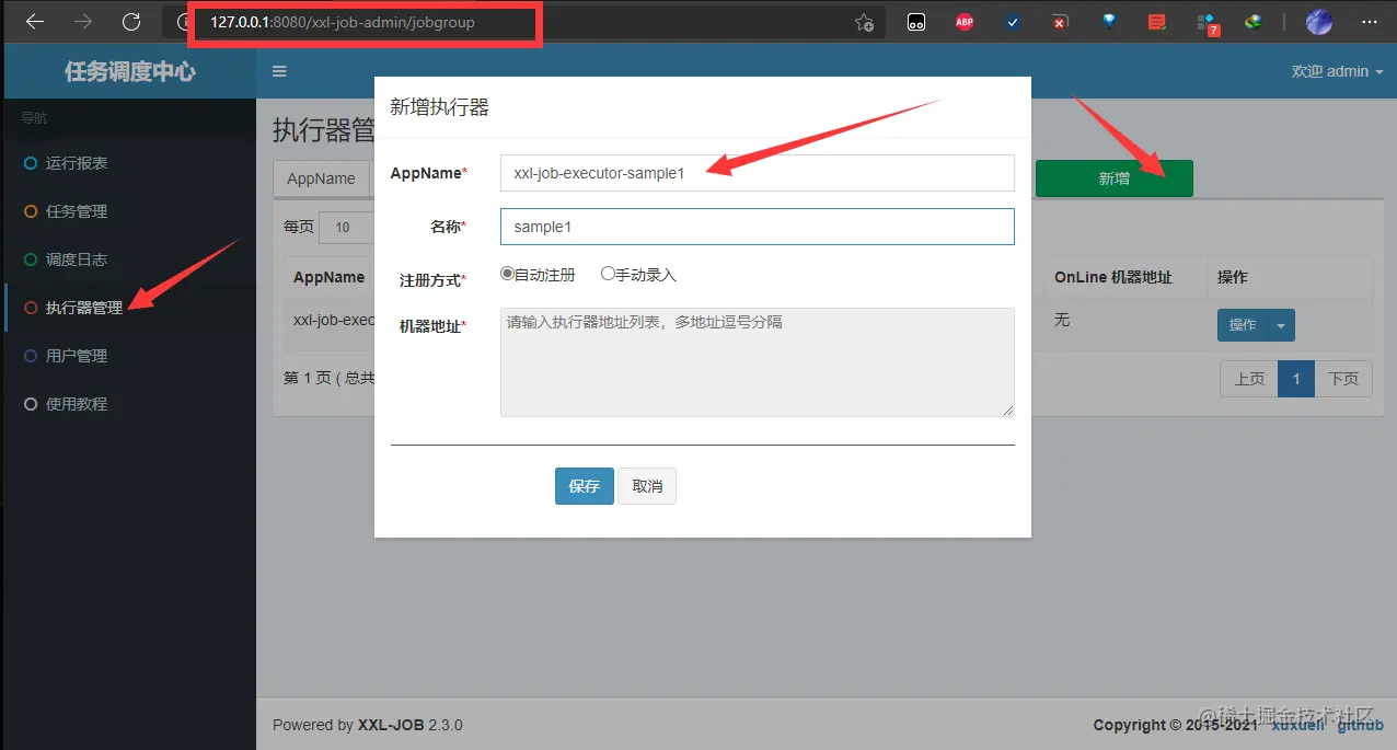 - 添加,AppName输入执行器配配置的AppName