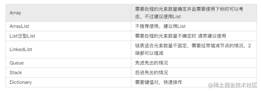 - 这里主要总结下在工作中常碰到的几种数据结构:Array,ArrayList,List,LinkedList,Queue,Stack,Dictionary<K,T>