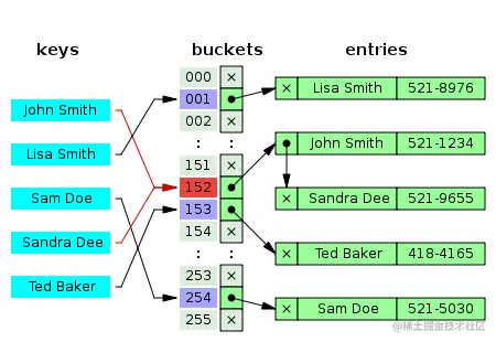 99999,总共5位数字,若每个数字都对应一个索引的话,那么就是100000个索引,但是如果我们使用后3位作为索引,那么索引的范围就变成了000999了,当然会冲突的情况,这种情况就是哈希冲突(Hash Collisions)了。 -