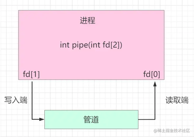 这里表示创建一个匿名管道,并返回两个文件描述符(PS,在Linux中一切皆文件),一个是管道的读取端描述符fd[0],一个是管道的写入端描述符fd[1]。这个匿名管道在Linux中构成一种特殊的文件系统,只存在于内存当中,不存在于文件系统中。