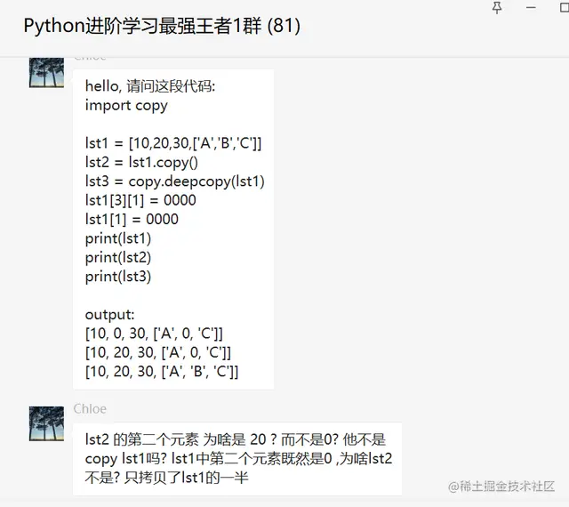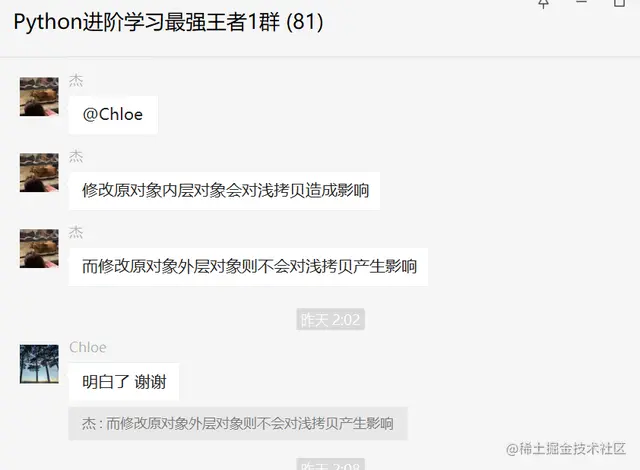 前几天在Python最强王者交流群有个叫【Chloe】的粉丝问了一个Python深浅拷贝的问题,这里拿出来给大家分享下,一起学习下。