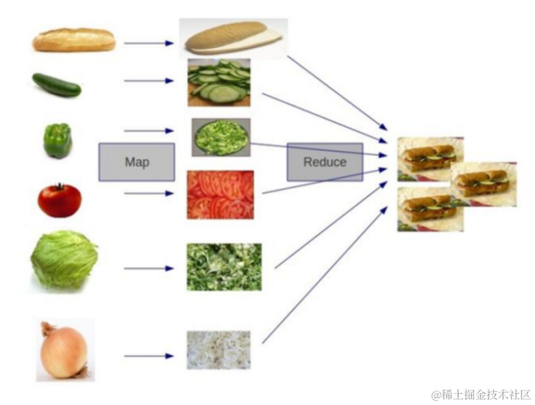 还有一个比较形象的语言解释MapReduce: