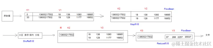 //3:K3就是原来的K2,V3就是新的FlowBean