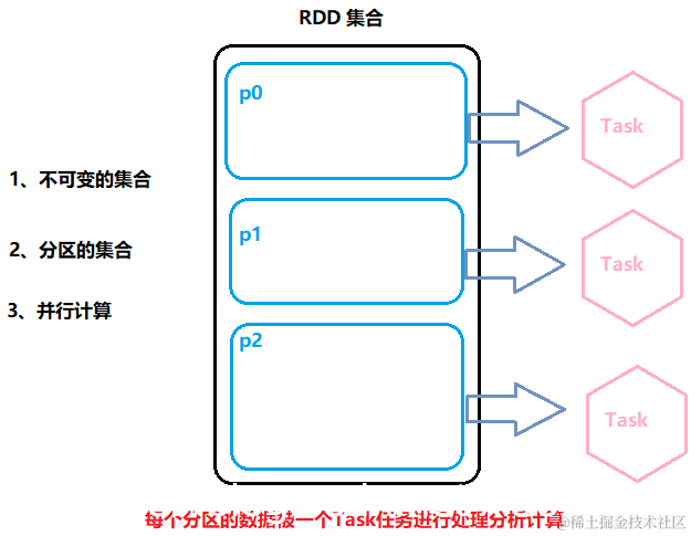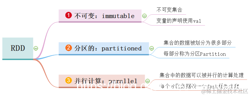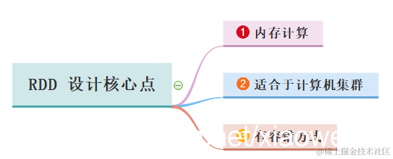 RDD弹性分布式数据集核心点示意图如下: