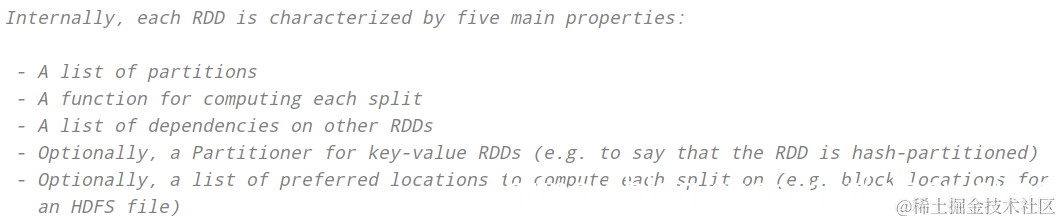 RDD 数据结构内部有五个特性(摘录RDD 源码):