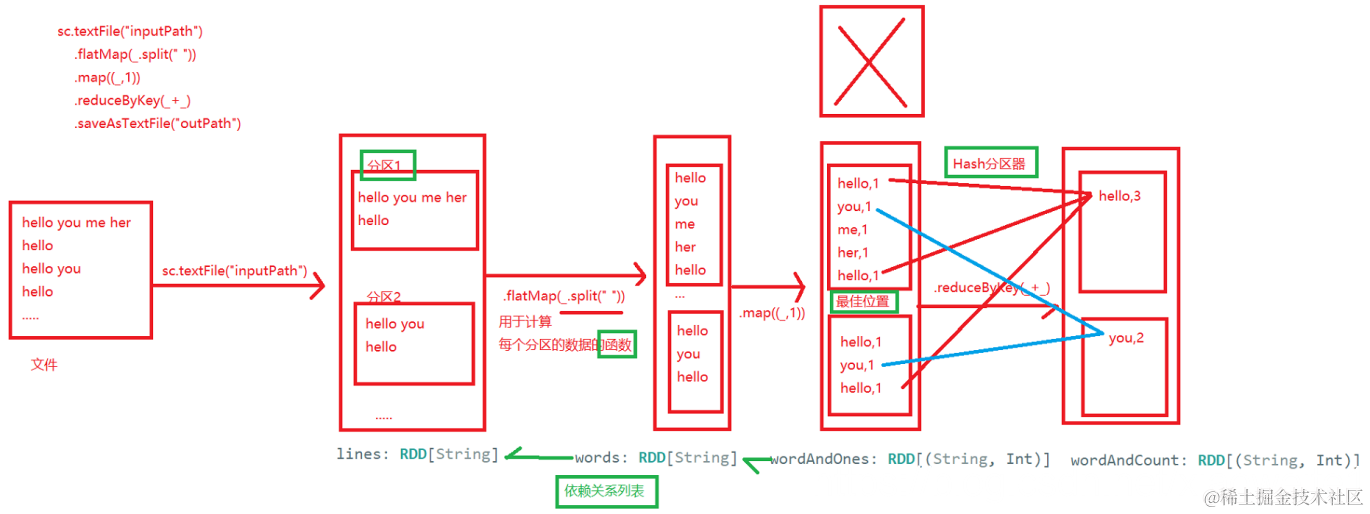 - RDD的每次转换都会生成一个新的RDD,所以RDD之间就会形成类似于流水线一样的前后依赖关系。在部分分区数据丢失时,Spark可以通过这个依赖关系重新计算丢失的分区数据,而不是对RDD的所有分区进行重新计算(Spark的容错机制);
