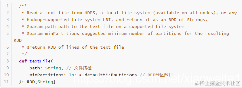 由外部存储系统的数据集创建,包括本地的文件系统,还有所有 Hadoop支持的数据集,比如 HDFS、Cassandra、HBase 等。实际使用最多的方法:textFile,读取HDFS或LocalFS上文本文件,指定文件路径和RDD分区数目。