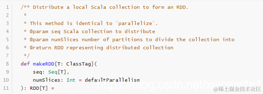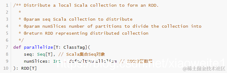 由一个已经存在的 Scala 集合创建,集合并行化,集合必须时Seq本身或者子类对象。