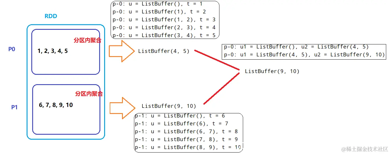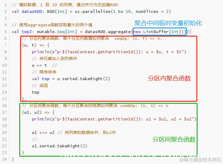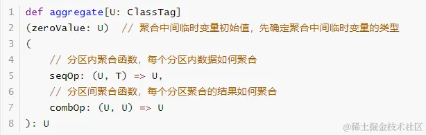 combOp: (U, U) => U // 分区间聚合结果的聚合操作函数