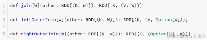 RDD中关联JOIN函数都在PairRDDFunctions中,具体截图如下: