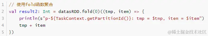 (zeroValue: U) // 聚合中间临时变量初始值,类似fold函数zeroValue