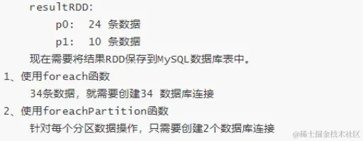 每个RDD由多分区组成的,实际开发建议对每个分区数据的进行操作,map函数使用mapPartitions代替、foreache函数使用foreachPartition代替。
