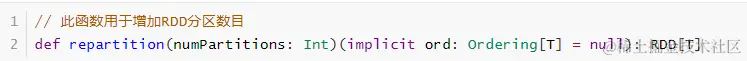 函数名称:repartition,此函数使用的谨慎,会产生Shuffle。