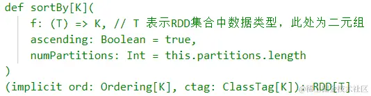f: (T) => K, // T 表示RDD集合中数据类型,此处为二元组